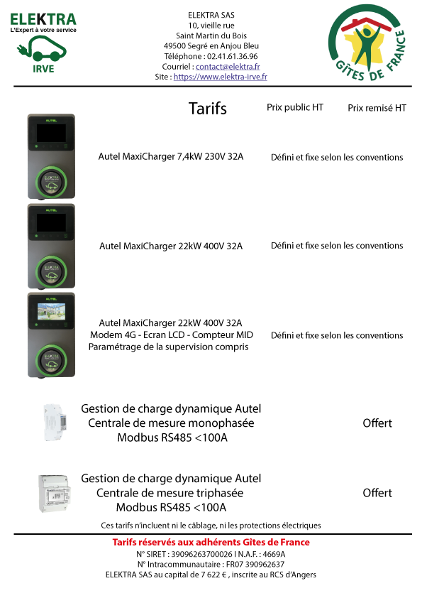 Elektra-irve est fier de son partenariat avec les Gîtes de France